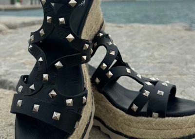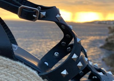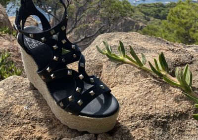 Experimenta la máxima comodidad con nuestra sandalia Malena en Bagur , en dos diferentes alturas: 8 y 10cms. Su suela de corcho - que evita ese impacto tan duro al caminar- forrada en yute de cáñamo y el cuero de primera calidad le dan un toque absoluto de sofisticación y comodidad. Ribeteada con tachas de níquel, le dan ese tono entre malote y elegante. Cómo estilizan!.